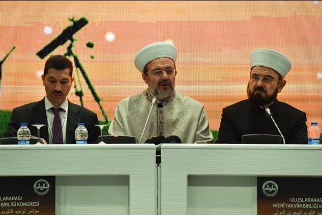 Saygıdeğer ilim adamları, öncelikle şahsım, Diyanet İşleri Başkanlığı ve İslam alimleri adına yaklaşık üç yıllık bir çalışmayı bugün neticelendirdiğiniz için ayrı ayrı teşekkür ederim. İlmi çalışma grubuna, fıkıh alimlerimize, astronomi alimlerimize üç yıllık bir çalışmayı neticelendirdiğiniz için teşekkür ediyorum. Umuyorum ki bu toplantı 60 yıllık İslam alemindeki ihtilafı ortadan kaldırır ve özellikle bütün dünyada yaşayan Müslümanların ibadetlerini, sevinçlerini vahdet, birlik ve beraberlik içerisinde yapmalarına vesile olur. Aynı camide namaz kılan Müslümanların bayram gününü birbirinden ayırmasına bu toplantı son verecektir.