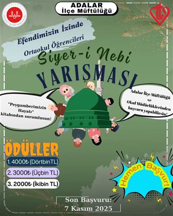 Adalar İlçe Müftülüğü tarafından düzenlenen “Efendimizin İzinde Siyer-i Nebi Yarışması” başvuruları başladı!