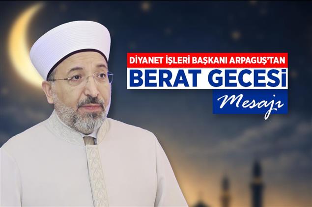 Diyanet İşleri Başkanı Prof. Dr. Safi Arpaguş, İslam aleminin Berat Gecesi’ni tebrik ederek, “Kalplerimizi yoran, bizi huzur-i ilahide mahcup edecek hata ve günahlarımız için Rabbimizden samimiyetle af dilemeli, iman ve istikamet üzere bir hayat yaşama azmimizi güçlendirmeliyiz.” ifadesini kullandı.