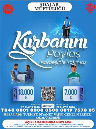Hesap Adı: Türkiye Diyanet Vakfı Genel Merkezi (Adalar Şubesi)