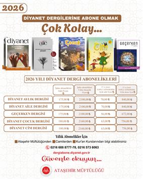 DİYANET DERGİLERİNE ABONE OLMAK ÇOK KOLAY...