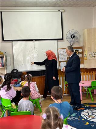 Kursiyerleri ve 4-6 yaş Kur'an Kursu Öğrencilerini tebrik eden İlçe Müftümüz Kur'an Kursu Öğreticilerimizden bilgi aldı.