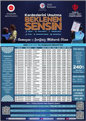 2026 YILI RAMAZAN AYI İMSAKİYELERİMİZ HAZIR.