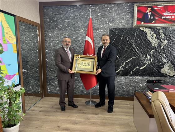 24 Kasım Öğretmenler Günü münasebetiyle İlçe Müftüsü Mehmet Özcan, İlçe Millî Eğitim Müdürü Özcan Şahin'i makamında ziyaret etti.