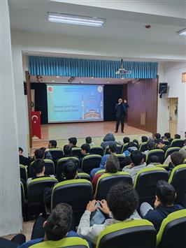 2026 yılı Ramazan ayı münasebetiyle düzenlenen okul konferansları kapsamında, Müftülüğümüz Gençlik Koordinatörü Vaiz Veysel Baydarman, Münir Tınaztepe Anadolu Lisesi öğrencileriyle bir araya geldi.