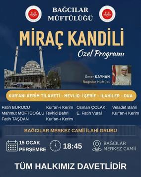 Miraç Kandili özel programı, Bağcılar Merkez Camii’nde yoğun katılımla ve manevi bir atmosfer içinde idrak edildi.