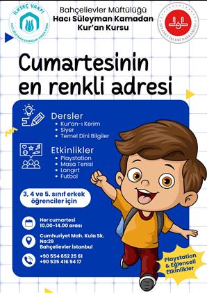 Kur'an-ı Kerim, İlmihal, Rehberlik dersleri yaptığımız ve sportif oyun ve etkinliklerle geçirdiğimiz programımıza bu link üzerinden kayıt yaptırabilir, çevrenize bu linki ulaştırarak faydalanmalarını sağlayabilirsiniz.