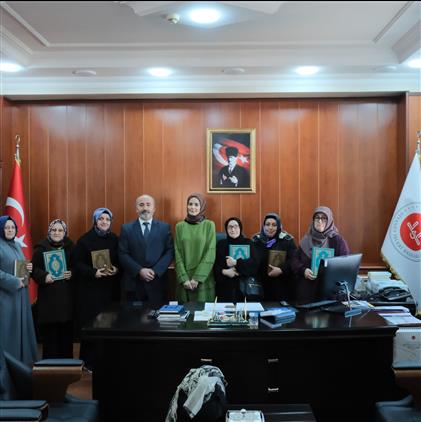 Bahçelievler’de faaliyet gösteren İşitme Engelliler Kur’an Kursu öğreticisi Gülcan Bolat ve kursiyer öğrencileri, Bahçelievler İlçe Müftüsü Mustafa Kayış’ı 19.02.2026 tarihinde makamında ziyaret etti.