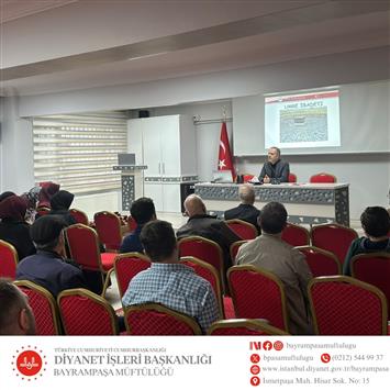 Bayrampaşa Müftülüğümüz Özel Umre Turu kapsamında Rahman'ın Misafirleri olarak 8 Kasım - 22! Kasım arasında Umre Yolculuğu yapacaklara yönelik Müftülüğümüz Konferans Salonunda İlçe Müftümüz tarafından seminer düzenledi.