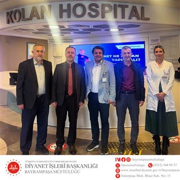 İlçe Müftümüz Recep Eren, Bayrampaşa Özel Kolan Hastanesi Genel Müdürü Salih Mercan ve Başhekim Dr. Şilan Kolan’ı ziyaret etti. Ziyarette, kurumlar arası iş birliği ve yürütülen hizmetler hakkında istişarelerde bulunuldu.