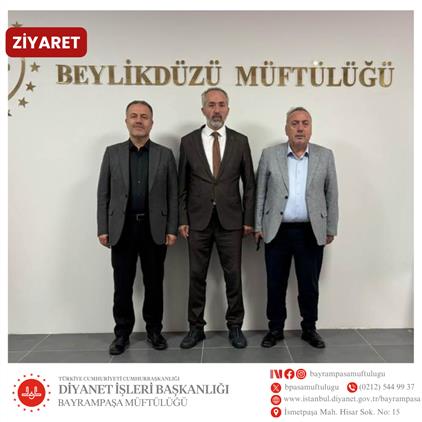 İlçe Müftümüz Sayın Recep Eren ve Gaziosmanpaşa İlçe Müftüsü Sayın Fazlı Mutlu, Beylikdüzü İlçe Müftüsü Sayın Selami Sayın'ı makamında ziyaret ettiler.