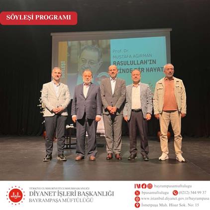 İlçe Müftümüz Recep Eren ve Beylikdüzü İlçe Müftüsü Selami Sayın, Esenler İlçe Müftülüğü tarafından Kadir Topbaş Kültür ve Sanat Merkezi’nde düzenlenen, Prof. Dr. Mustafa Ağırman Hocaefendi’nin konuşmacı olarak yer aldığı “Rasûlullah’ın İzinde Bir Hayat” konulu söyleşiye katıldılar.