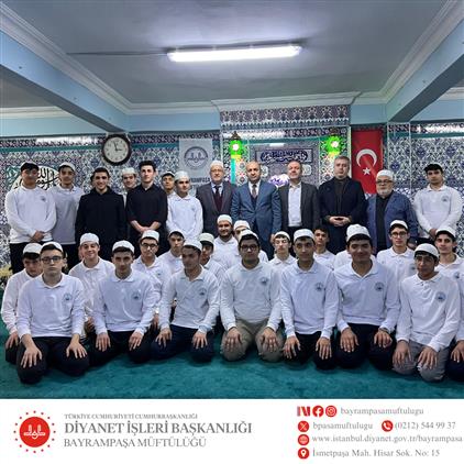 Bayrampaşa Kaymakamımız Abdullah Çiftçi ile İlçe Müftümüz Recep Eren, Hayırseverler Kur’an Kursunu ziyaret etti. Ziyarette hafız öğrencilerle bir araya gelinerek hasbihal edildi ve öğrencilerin eğitim durumları hakkında bilgi alındı.