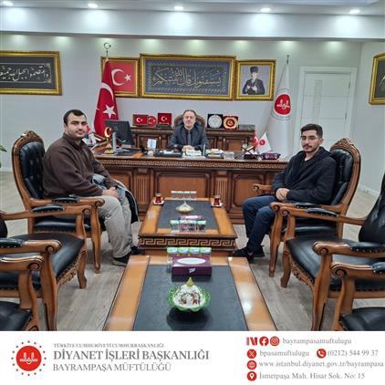 Yıldız Teknik Üniversitesi Matematik Mühendisliği Bölümü öğrencisi Adnan Er ile Elektronik ve Haberleşme Mühendisliği Bölümü öğrencisi Muhammet Anaç, İlçe Müftümüz Recep Eren’i makamında ziyaret etti.