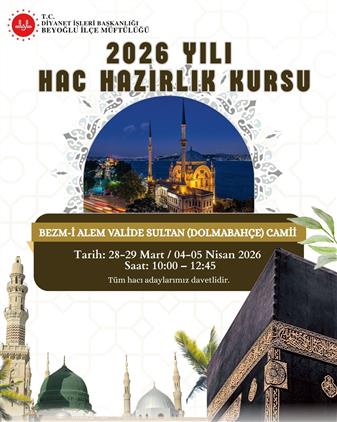 2026 yılı Hac hazırlık kurslarımız başlıyor. Hac ibadetine hazırlanan tüm vatandaşlarımız davetlidir.