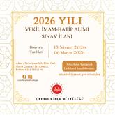 2026 Yılı Vekil İmam-Hatip Alım Sınavı 15.04.2026 İlk müracaat Tarihi : 15 Nisan 2026 Son Müracaat Tarihi : 06 Mayıs 2026 Detay