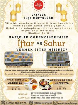 HAFIZLIK ÖĞRENCİLERİMİZE İFTAR & SAHUR VERMEK İSTER MİSİNİZ?