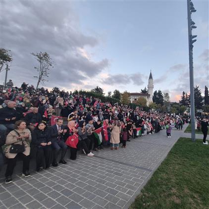 Yürüyüş boyunca “Kahrolsun israil , Filistine Özgürlük ”, gibi sloganlar atıldı. Ellerinde Türk ve Filistin bayrakları taşıyan vatandaşlar, çocukların da yer aldığı kortejle Çatalca Millet bahçesini doldurdu.