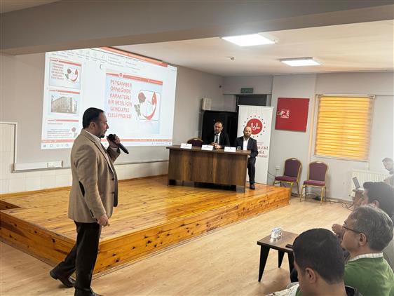 Program sonunda İlçe Müftümüz Selami Aykul, misafir konuşmacıları temsilen Diyanet İşleri Uzmanı Sayın Bahtiyar Kargıoğlu’na tablo takdiminde bulundu.