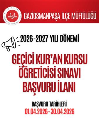 2026 YILI GEÇİCİ KUR'AN KURSU ÖĞRETİCİSİ SINAV İLANI