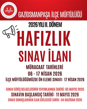 2026 Yılı II. Dönem Hafızlık Tespit Sınavı Duyurusu