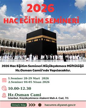 2026 YILINDA KÜÇÜKÇEKMECE MÜFTÜLÜĞÜ, HAC FARİZASINI YERİNE GETİRECEK HACI ADAYLARIMIZA YÖNELİK EĞİTİM SEMİNERİ DÜZENLENECEKTİR.
