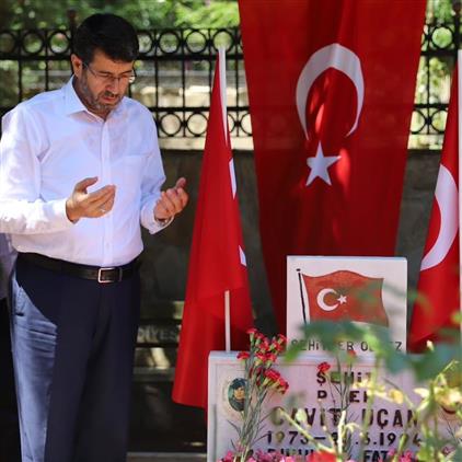 Şehitlerimizin kabirleri başında İlçe Müftüsü Mehmet Muslu tarafından tüm şehitlerimiz ve vefat eden gazilerimiz için dualar edildi.