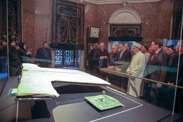 İstanbul Fatih`teki Hırka-i Şerif Camiinde bulunan kutsal emanetlerden Hırka-i Şerif ziyarete açıldı.