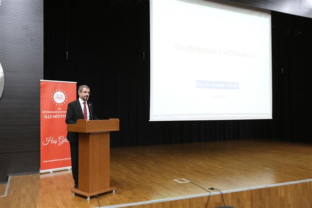 Büyükçekmece Şehit Münir Alkan Fen Lisesi Konferans Salonu’nda düzenlenen programda Müftü Doç. Dr. Tuncel, din görevlilerine hitap ederek yürütülen din hizmetlerinin önemi ve sahadaki çalışmalar hakkında değerlendirmelerde bulundu.