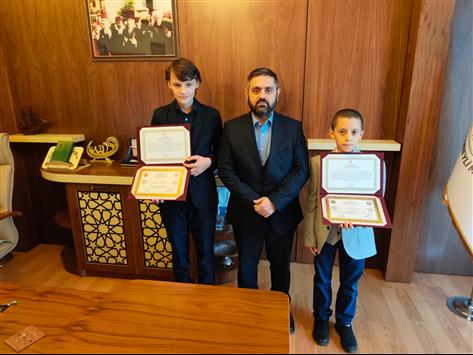 Mısırlı Musa İsmailia (9) ve Ukraynalı Danııl (İsmail) Shandurenko (14), hafızlıklarını yaklaşık 1.5 yılda tamamladı.