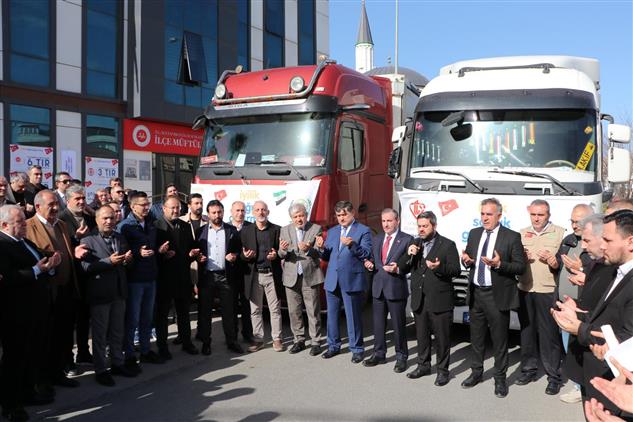 Yapılan törenin ardından İlçe Müftüsü Albayrak’ın yaptığı duayla yardım tırları uğurlandı.
