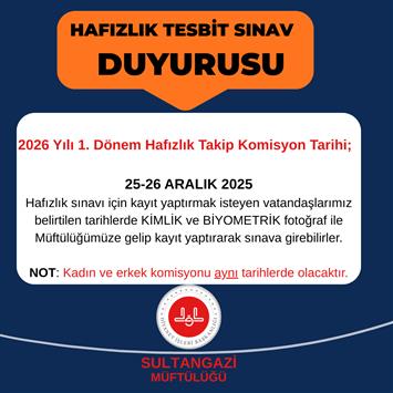 HAFIZLIK TESPİT SINAVI DUYURUSU (2026 Yılı I. Dönem)
